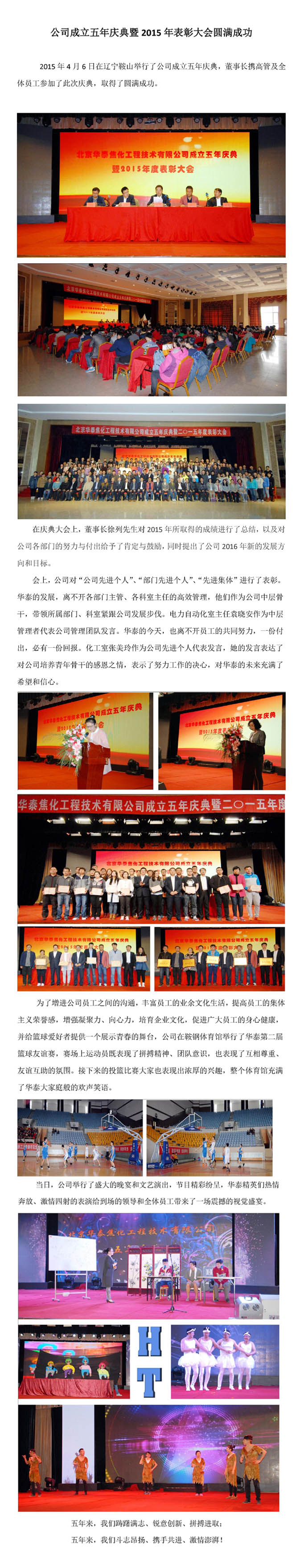 公司成立五年庆典暨2015年表彰大会圆满成功
