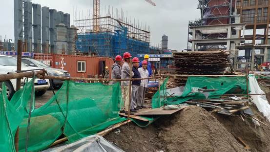 午餐结束,董事长徐列马不停蹄的前往天顺焦化项目部调研。19日凌晨到20日上午,京唐港遭遇了今年以来最大的除雨量,天顺焦化路面积水超过1米,涉水来到项目现场。董事长徐列在现场对102转运站积水严重做出了重要指示,要求项目部想尽一切办法抽水,确保2#、3#本体安全,抽完水后一定要加快施工进度,转运站浇注后尽快回填。施工开车部部长王冬枫要求项目部做好本体基础的沉降和位移观测,使其始终处于受控状态。项目经理李金海对项目的进展情况进行了汇报,虽然102转运站的施工目前遇到了一些困难,但相信在公司的正确领导下,能够交出一份满意的答卷。董事长徐列与天顺总经理崔自双召开了现场会,102转运站基坑抽水、防护和项目投产时间,做了具体的安排,天顺总经理崔自双对董事长徐列在中秋前夕冒雨来到现场推动项目工作表示诚挚的感谢,对华泰的干熄焦项目满怀信心,相信华泰能够打造精品工程。