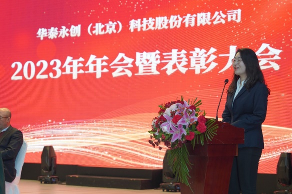 在颁奖典礼上,先进个人代表卢丹妮、先进项目经理代表姜士敏、先进中层代表王双平、优秀管理者代表陈本成以及先进个人智维公司代表尹志东,相继上台发言,满怀激情地分享了自己成长的内心感悟与奋斗的心路历程。在新的一年里,他们号召全体同事顺应时代潮流,紧密合作,克服困难,勇往直前,全力以赴完成2024年度的各项目标任务,共同开创华泰更加辉煌的明天。
